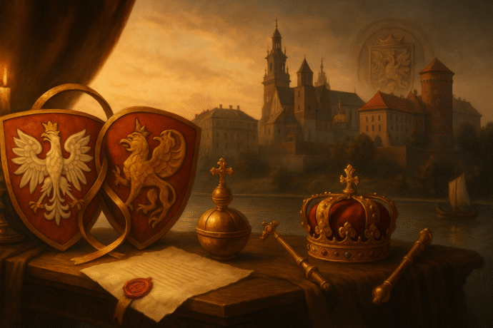 Jeśli więc pytać, czy to „polityczny romans”, czy „dobre małżeństwo”, odpowiedź brzmi– zaczęło się jak romans, skończyło jak małżeństwo z pełnym majątkiem wspólnym. Kujawy wniosły energię, ludzi i symbole; Kraków – rangę i świątynię koronacyjną. W nagrodę oba brzegi Wisły dostały dynastię, która po latach rozbicia potrafiła „odnowić Królestwo”. Łokietek – urodzony na Kujawach, koronowany w Krakowie – spiął to jednym gestem; Kazimierz – również z kujawskiej krwi – dopisał temu związkowi rozmach prawa, murów i skarbca. A gdy dziś patrzymy na Orła na fasadzie katedry, na pieczęcie z półorłem-półlwem i na kielichy królewskich fundacji, widzimy nie tylko sztukę i heraldykę. Widzimy podpisy pod kontraktem, który uczynił z Krakowa stolicę, a z Kujaw – nieodłącznego współmałżonka polskiej korony.